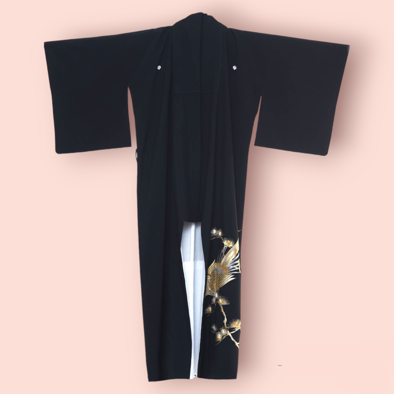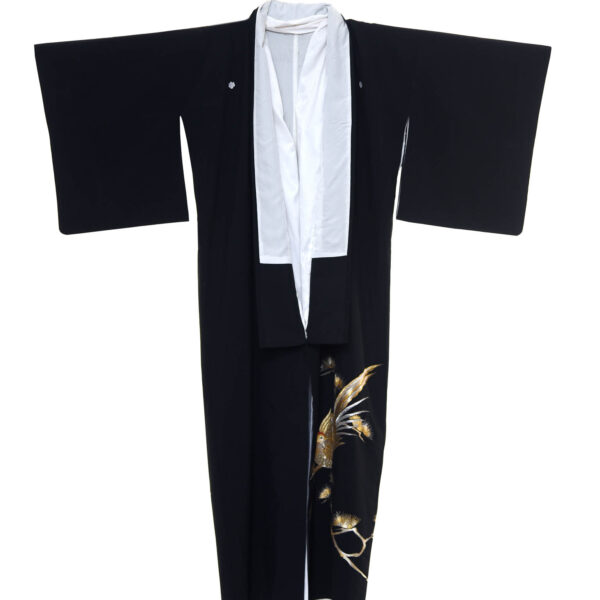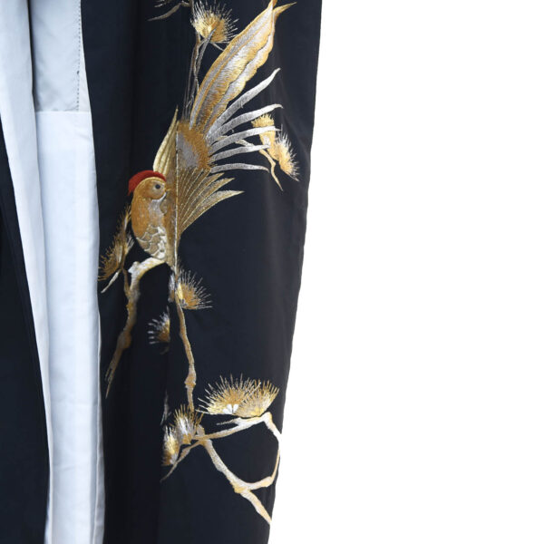 •Κιμονό μαύρο με ασημένια πουλιά