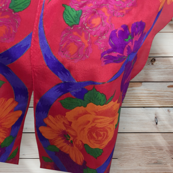 •Μαντήλι με λουλούδια πορτοκάλι-μπλέ-φούξια-μώβ