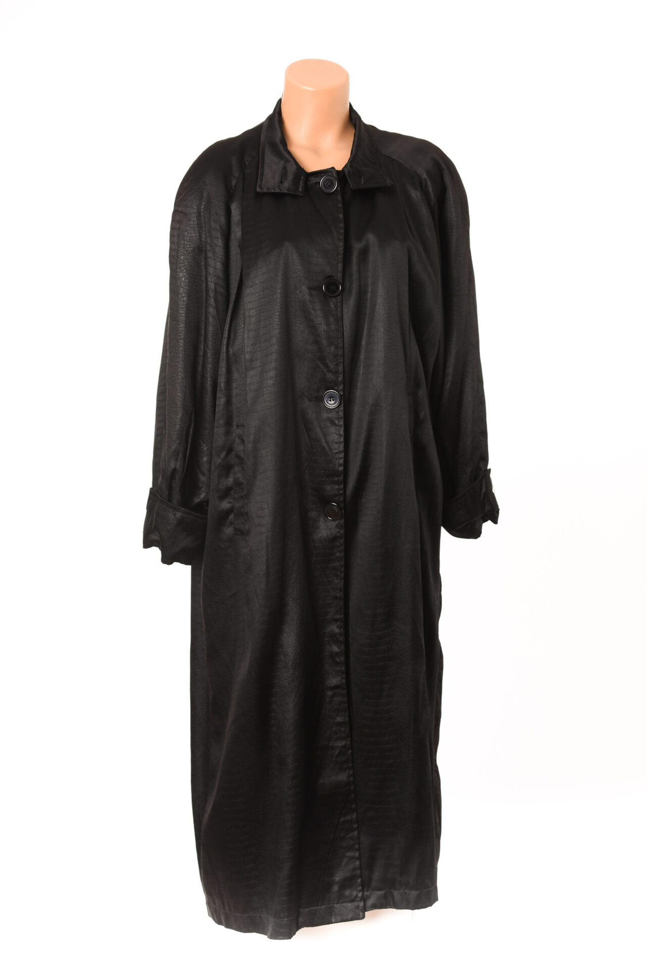 •Καπαρντίνα μαύρη vintage,σατέν κροκό στην ύφανση