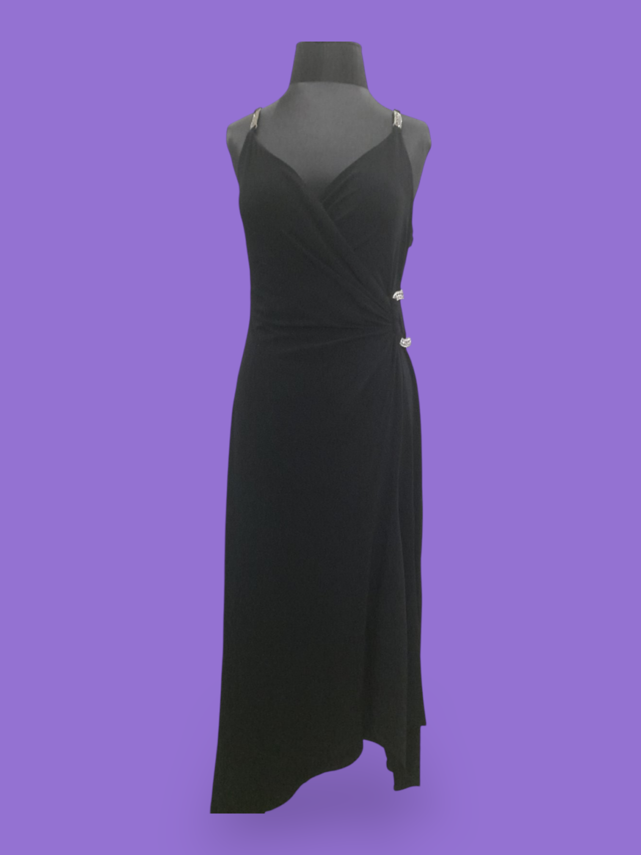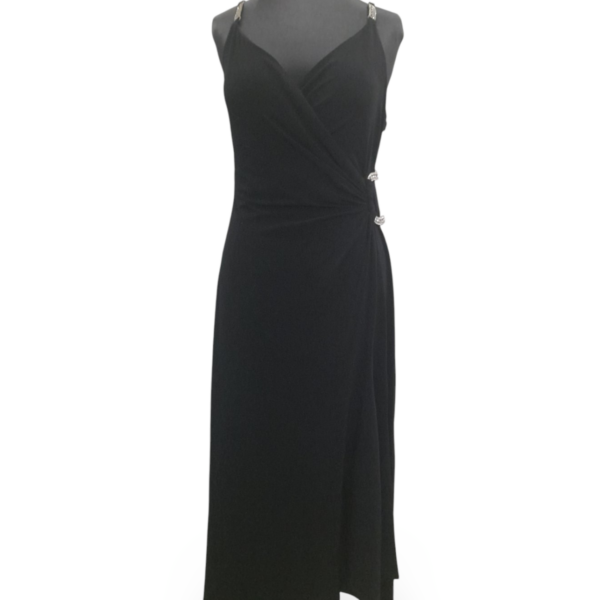 •Φόρεμα μαύρο ντραπέ,με στρας στους ώμους και τη μέση